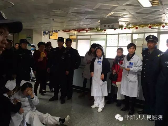 在五楼会议室,我院与家属及村二委干部进行会谈,并由医务科钟科长负责接待并解释死亡原因,家属表示不理解,要求赔偿30万元。在行政楼三楼会议室,上官惠敏副院长与患儿父亲及村二委四位干部再次进行调解,昆阳镇派出所驻我院警务室的程警官协助调解。我院认为在诊疗过程中诊疗行为规范,不存在过错,故建议患儿家属进行尸体解剖,采取司法程序解决医疗纠纷。但家属情绪激动,多人冲击儿科病房,砸坏护士站电脑、心电监护仪、桌子、椅子、病历夹等物品,并将死婴放置护士站桌上,严重扰乱正常医疗秩序。2016年2月4日 23:50我院通知家属将患儿尸体移至太平间,家属拒绝。2月5日凌晨00:20由我院保安、昆阳镇派出所民警、特巡警大队共同强制将患儿尸体移至太平间。2月5日上午,我院领导班子、医务科等相关科室与患方家属再次进行沟通解释,建议患方可以通过平阳县医疗纠纷调解委员会(第三方调解机构)介入协调解决,或采取司法途径。2月5日14:30左右,患儿家属在我院儿科病区闹事,辱骂并殴打正在上班的已怀孕6个多月的护士,致其眼部充血,一过性失明,家属声称“我的孩子没了,你的孩子也要一起陪葬”,言语、行为极端恶劣。现该护士已入住产科病区,予以胎心监护、吸氧、胎儿B超检查,产妇及胎儿情况有待进一步观察。目前患方家属仍滞留我院,围堵在大院门口,阻塞医疗急救通道;在儿科病房辱骂吵闹、殴打医务人员,损坏医疗设备,严重扰乱我院正常医疗秩序。