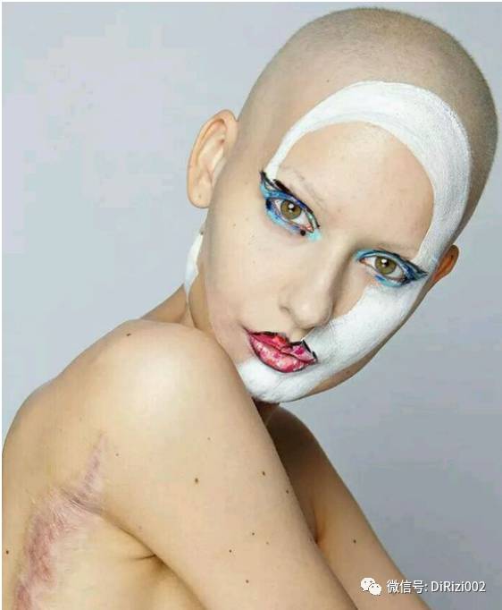 除了脸上的彩妆,她身体上不着一物,将巨大的伤疤暴露在人们眼前,这似乎并不影响她的美丽,反而让美透露出一股生猛的力量。