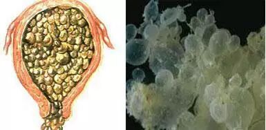 (3)卵巢黄素囊肿 葡萄胎患者由于大量HCG的刺激,双侧或一侧卵巢往往呈多发性囊肿改变。