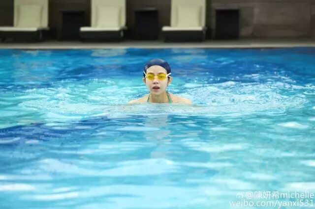 在微博上晒出自己的游泳健身照~