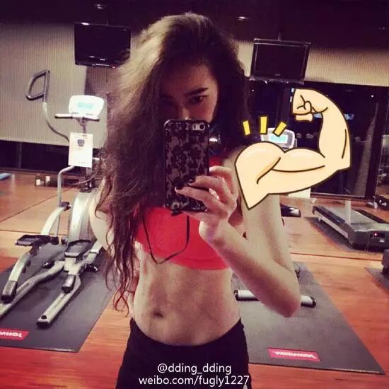 近日在微博中晒出了自己的健身照,