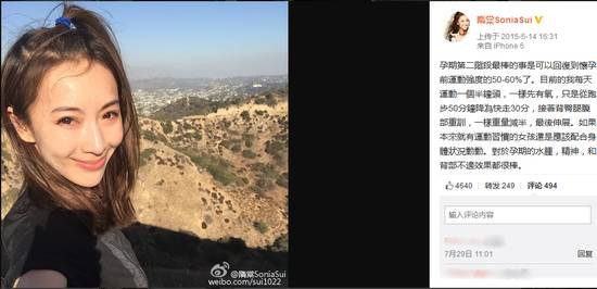 名模隋棠怀孕期间也坚持健身