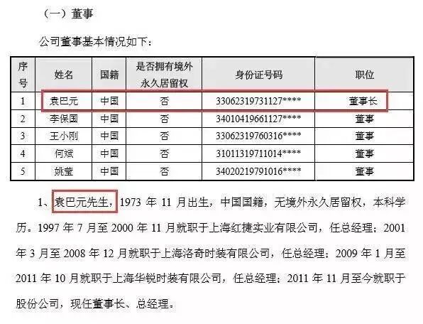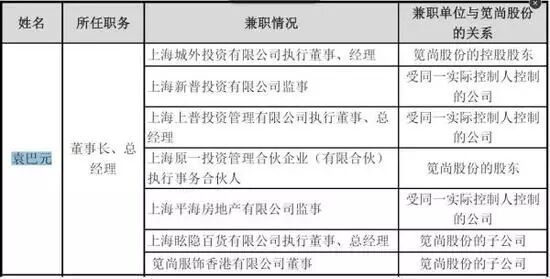 据公开资料显示,袁巴元商界人士,现任上海笕尚实业股份有限公司董事长。笕尚股份主营服装、鞋帽等用品的零售、批发业务,旗下拥有时尚品牌MJStyle。公司已经提出新三板挂牌申请,目前仍在待审查阶段。