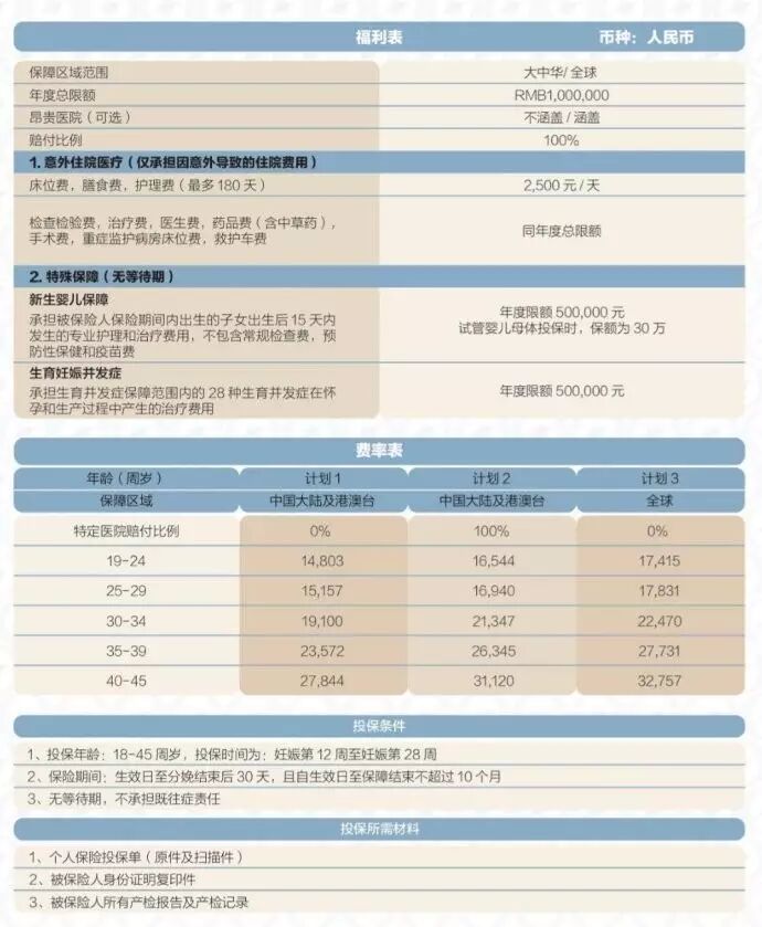 可是,高医小公主今天介绍的这款产品,没有等待期,买了就能用。专为孕妈妈量身订制,人工受孕的妈妈也能投保:利安孕中险。