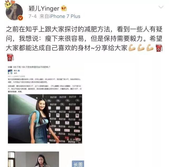 然后就有很多人都关注颖儿是咋瘦下来的啊,她在知乎上分享过减肥方法。