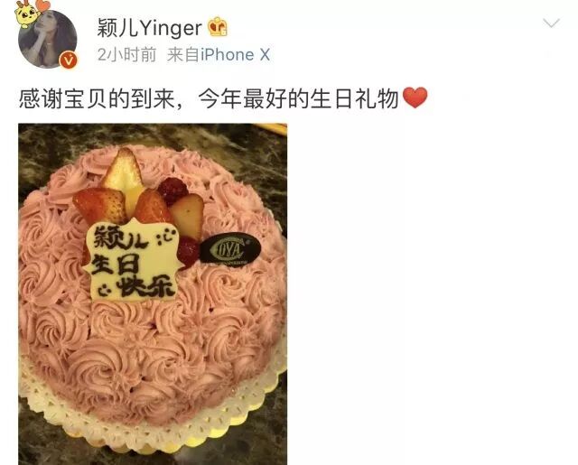 颖儿在中午的时候发了一条微博,庆祝自己生日快乐的同时宣布了宝宝的到来~