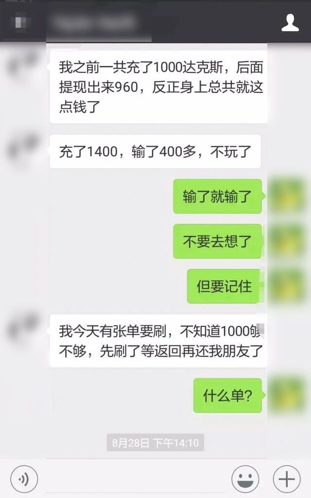 在我店里期间她也经常参与赌博!一款叫XX斯的游戏赌博,赔率非常高!我经常劝她不要玩,她一开始不听。