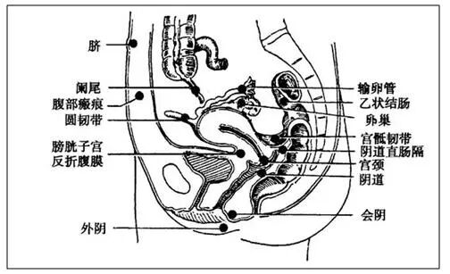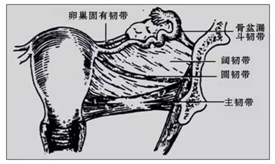 当膀胱空虚时,成人的子宫位置呈轻度前倾前屈位,主要靠4对子宫韧带(圆韧带、阔韧带、主韧带及宫骶韧带)和盆底肌肉和筋膜的支托作用。其中,圆韧带、宫骶韧带维持子宫前倾,阔韧带呈羽翼状由子宫侧缘延伸到盆壁,可限制子宫向两侧倾倒,主韧带固定宫颈位置,保持子宫不致下垂。因此,当上述韧带、盆底肌和筋膜薄弱或者受损伤时,可能导致子宫脱垂。