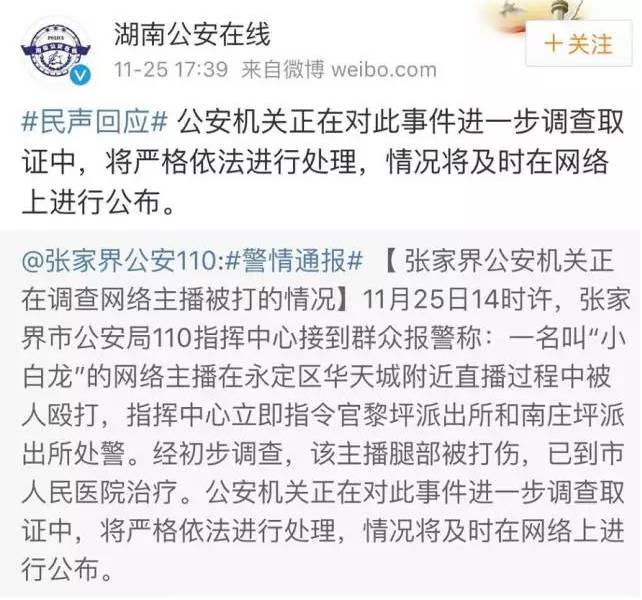 张家界警方已介入发微博表态正在对此事件进一步调查取证中,将严格依法进行处理,情况将及时在网络上进行公布。