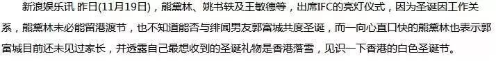 蜜恋期,为了不给天王压力,熊黛林自己放低要求,说圣诞礼物只希望看到香港下雪。