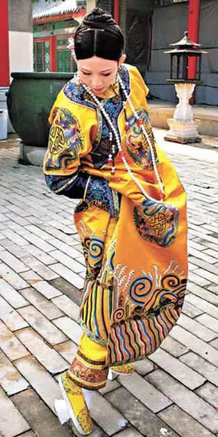 因为是清朝古装大戏,又是皇后,更要踩着七分公的满族花盆鞋拍摄,可谓是步步惊心啊!