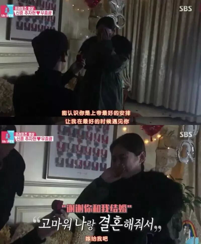 公开了求婚的视频,烟花、气球、钻戒。浪漫元素完全堪比韩剧水准。