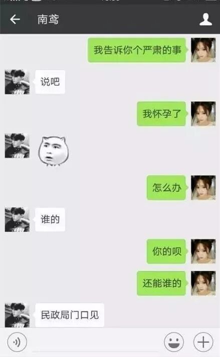 和自己的男朋友说个“我怀孕了”,哈哈哈看看对方的反应