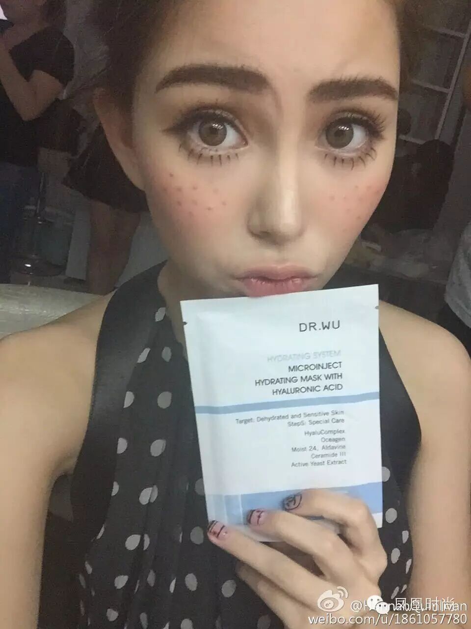 6月2日,怀孕5个月的昆凌还在自己的微博中晒出了“雀斑妆”,大方推荐自己的心爱宝贝Dr Wu玻尿酸14天密集补水面膜(专柜售价:一盒7片460元)。这个孕妇还真是爱臭美呢!