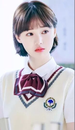 谭松韵,一个可以一直活在18岁的小阔爱!和郑爽一样,短发的她们学生气息浓烈。