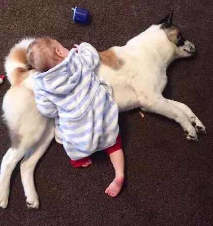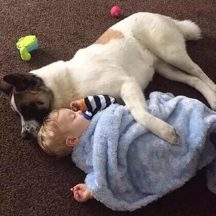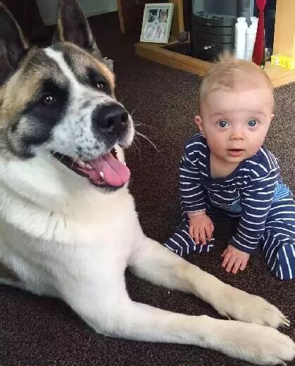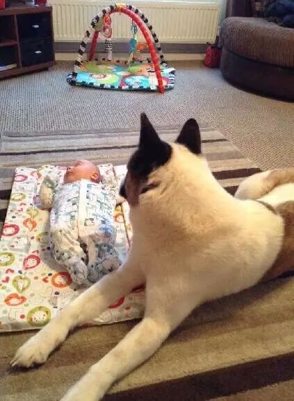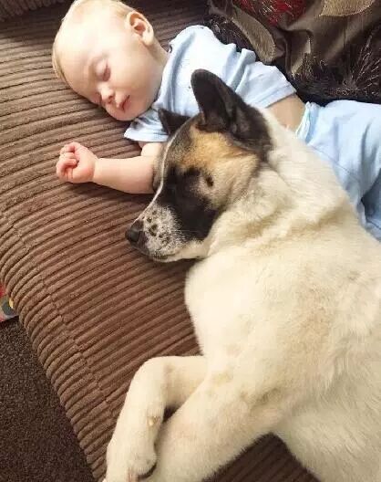 狗狗似乎也乐于弟弟的到来,经常寸步不离的守着麻麻,成为了麻麻忠实的小护卫!