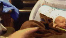 没想到在这个时候,麻麻肚子里的宝宝调皮的踢了一脚,感受到“胎动”的狗狗瞬间懵逼了:什么情况,谁啊,谁踢的我?