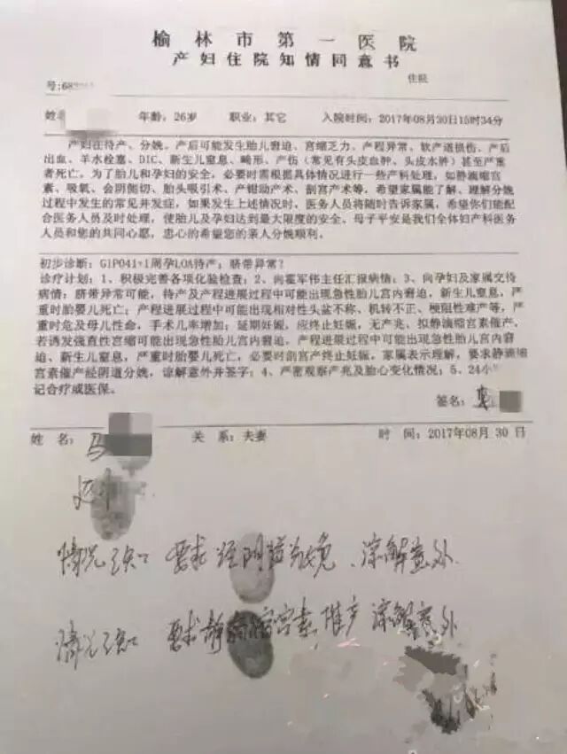 然而家属坚持顺产,并在《产妇住院知情同意书》上签字。