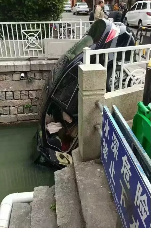 【泉州】突发!泉州市区一轿车冲下内沟河!监控拍下诡异一幕!