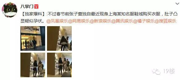 2月14日,微博博主“八掌门”爆料称春节前张子萱独自现身上海购买衣服,肚子凸显疑似怀孕,并晒出张子萱逛街的照片。