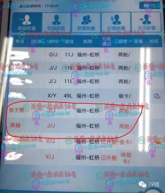除此之外,“关爱八卦成长协会”还晒出一张航程单,上面显示陈赫和张子萱前两天一起从福建坐飞机回上海了,据此航程记录,“关八”推测,“他们春节是一起在福建陈赫家里过的年,看来陈赫家里应该是完全接受了张子萱哇。