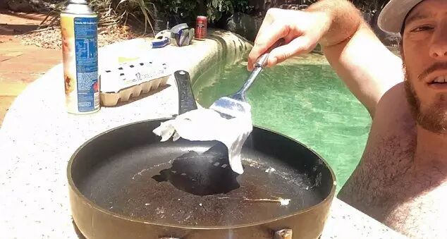 3、澳大利亚男子烈日下仅用平底锅做好煎蛋