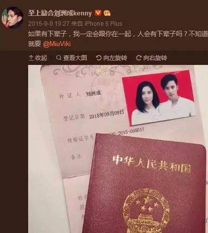 据悉,刘洲成于15年9月9日在微博上晒出结婚证,并艾特了新婚妻子林苗,那时两人已育有一女,而据传女方是个富二代。