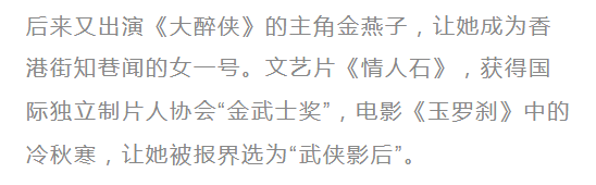 吃得苦中苦,方为人上人。身为打女演员,郑佩佩比别人更加辛苦,一部部优秀作品,让她成为香港人心中的“武打女皇”。