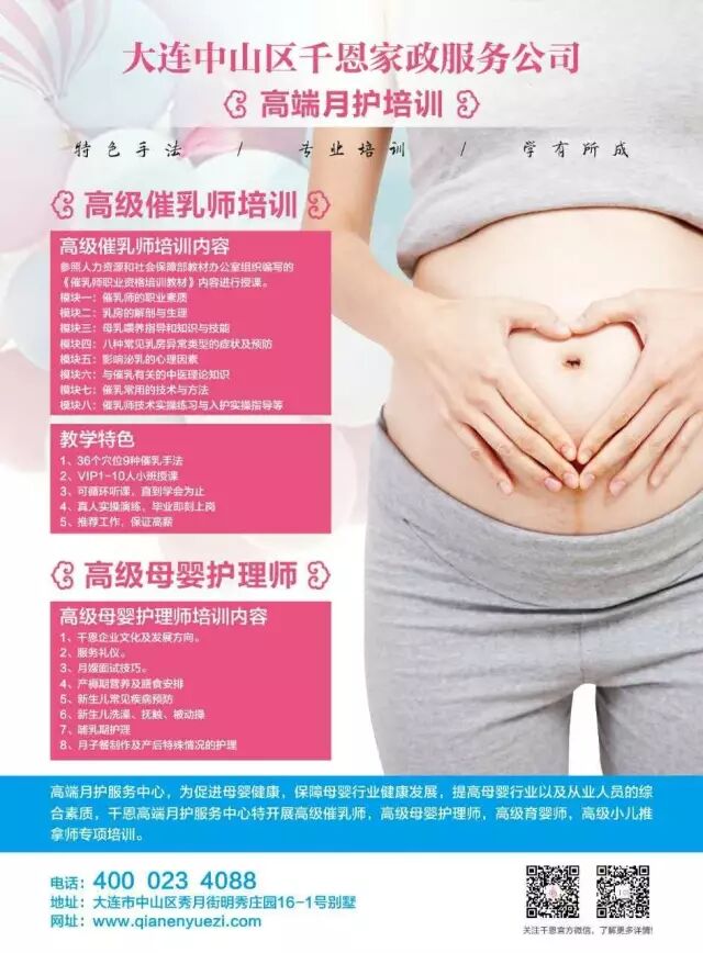 千恩月子养生会馆坐落于被誉为“大连绿色之肺”的中山区秀月街明秀庄园,百亩绿化山林环绕,空气质量全城最佳,独栋养生别墅,让坐月子的妈妈在从容优雅中完成女人一生中最完美的蜕变。给孩子一个和谐自然的成长空间,专业资深的管理团队,以人为本的东方理念,全新诠释‘1+N对一’服务的深刻内涵,享受台湾三十年母婴养生经验,特别针对东方人体质与生活习惯,从产、妇、儿、营养、心理等多方向着手,分别设计母婴疗养中心、宝贝SPA中心、妈妈恢复中心、专业膳食中心、亲友接待中心五大核心功能区,全面满足天伦之乐的生命追求!