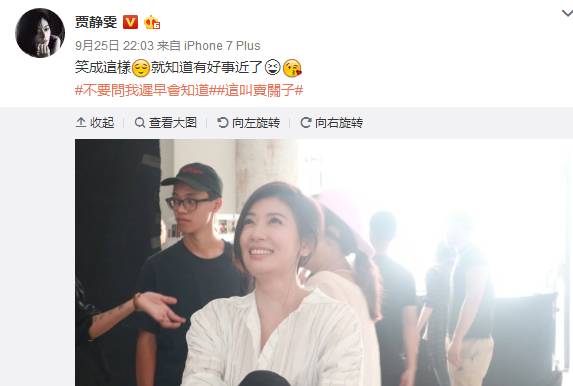 贾静雯突然发了一条这样的,当然,可能只是心情好,但是如果真的不是一般的意思,难道真的是要说明什么?