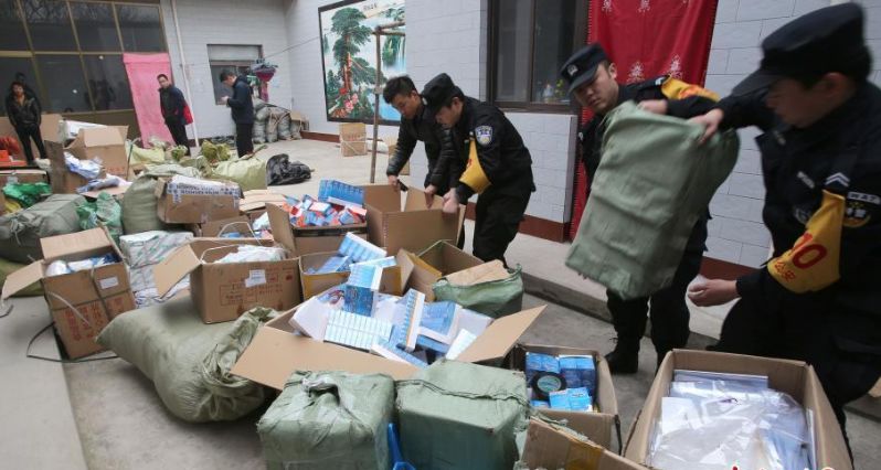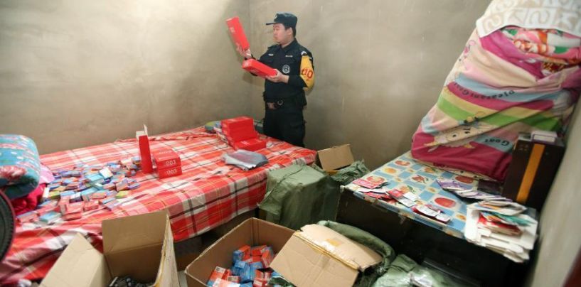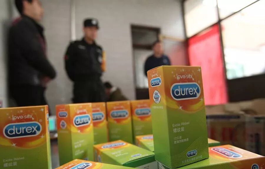 现场铺满地一举将两个犯罪团伙的加工、仓储和销售等六个窝点一网打尽,现场控制嫌疑人15名,共查获假冒“杜蕾斯”、“杰士邦”、“冈本”等注册商标的成品安全套共124余万个,散装裸套46余万个、覆膜机两台、封袋机两台、热塑机两台、“杜蕾斯”包装盒10余万个等等,总价值500余万元。