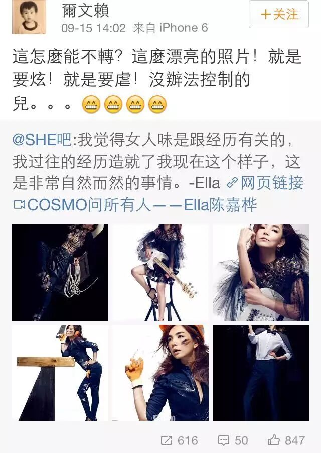 而且还专门以“老婆”为名作曲,并收录在S.H.E迈入乐坛的第十张专辑《PLAY》当中。从歌词中我们也能看出Ella对二位“老婆”满满的爱~