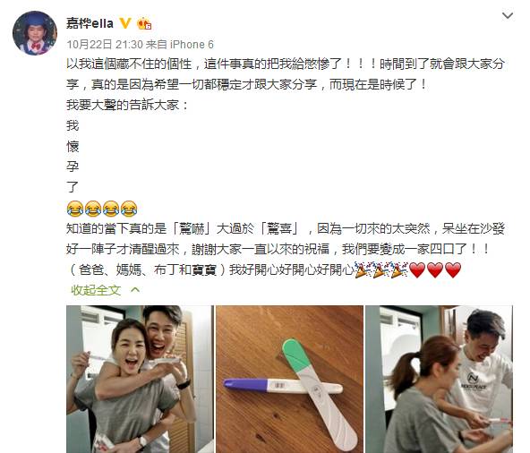 今天和大家分享的是SHE中的Ella,22号Ella在网上发文正式宣布怀孕了!!