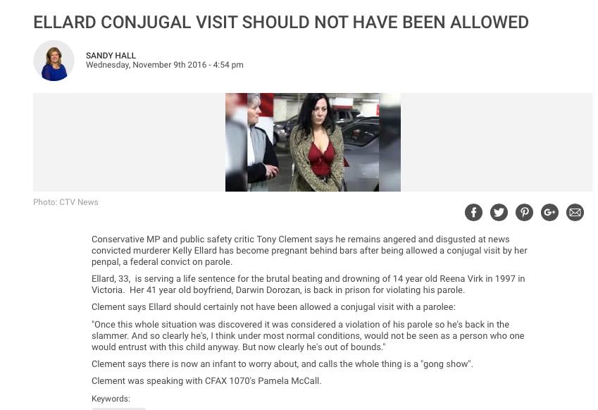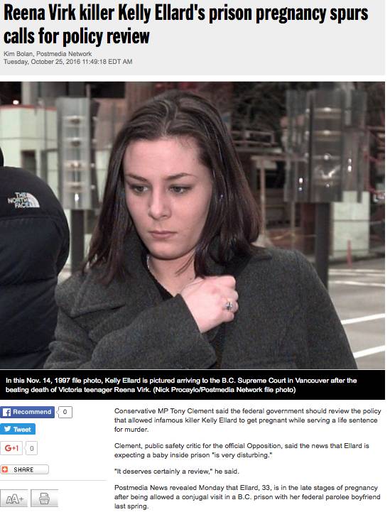 服刑14年,女犯人Ellard竟然去年在狱中 怀 孕 了!还诞下了一名婴儿!What? 看到来在加拿大,狱中交友已经不算是事,狱中生子才是大招。