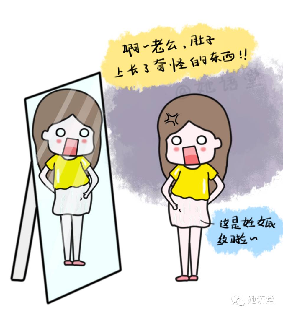 肚子慢慢地变大;臀部、腿部、手臂也都变得肉肉的;曾经洁白无瑕的脸蛋也长出了讨厌的色斑;肚子也出现了妊娠纹……