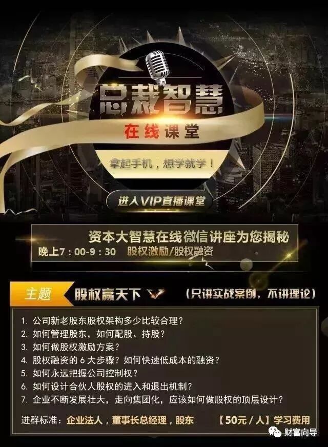 除了卖产品赚钱,你知道高手如何卖股权、卖现金流赚更多更多钱吗?股权是企业无本息融资及0成本开拓市场的重要工作。
