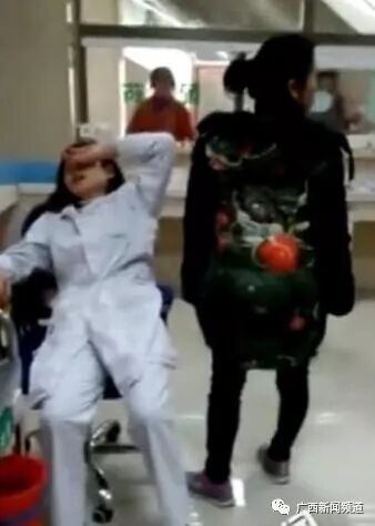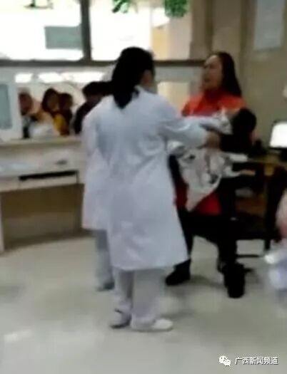 从当事人提供的视频中看到,一女子带小孩到通山县人民医院门诊输液室输液,输完液后护士朱某给孩子拔针时针孔出血,家长马上与护士理论,并开始踢护士的肚子,揪着她头发不放。这时旁人上前劝架并告知该护士已怀孕,但是女子仍旧继续辱骂。