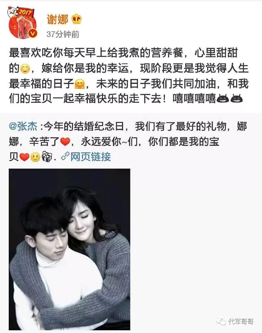 张杰和谢娜在九月二十六日的纪念日上不仅虐狗还公布了怀孕的喜讯,杰哥终于要当爹了,催孕大军也可以放暑假了。