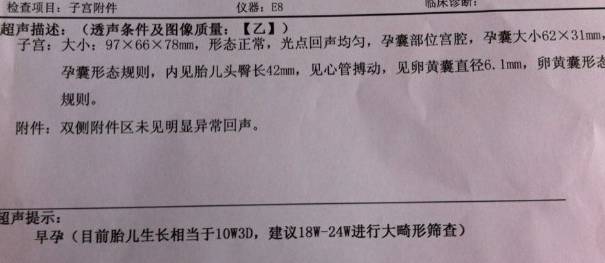 这是9周多的B超报告,可惜没图片呢,不过是人形小宝宝了哦,还听到小火车般心跳声。