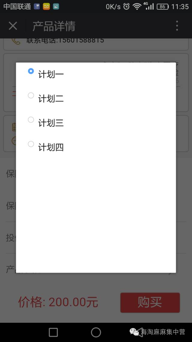 投保界面点击『计划一』处,即可调出方案选择菜单,根据自己需求投保。