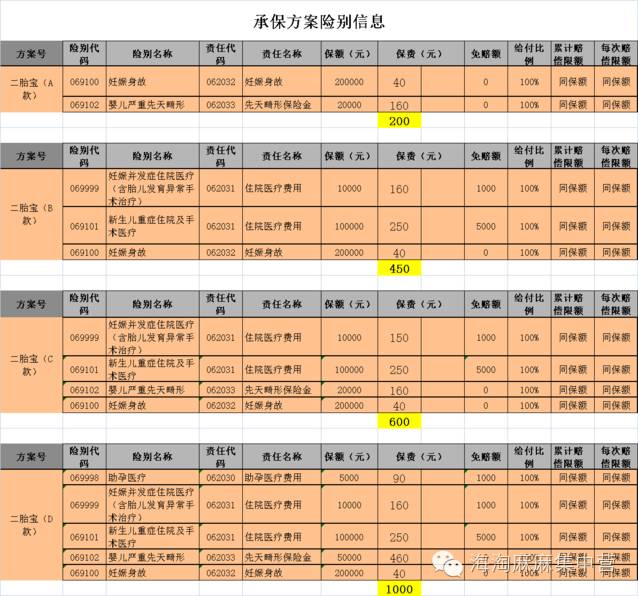 特别提示:下图产品名称“二胎宝”就是目前的“安孕健康”(二胎宝换名),本产品不论一胎还是二胎,都可以投保。