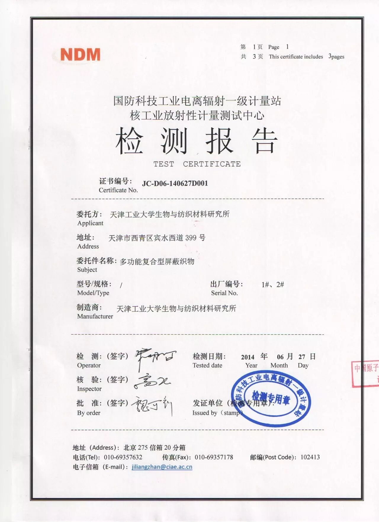 核工业部的检测报告