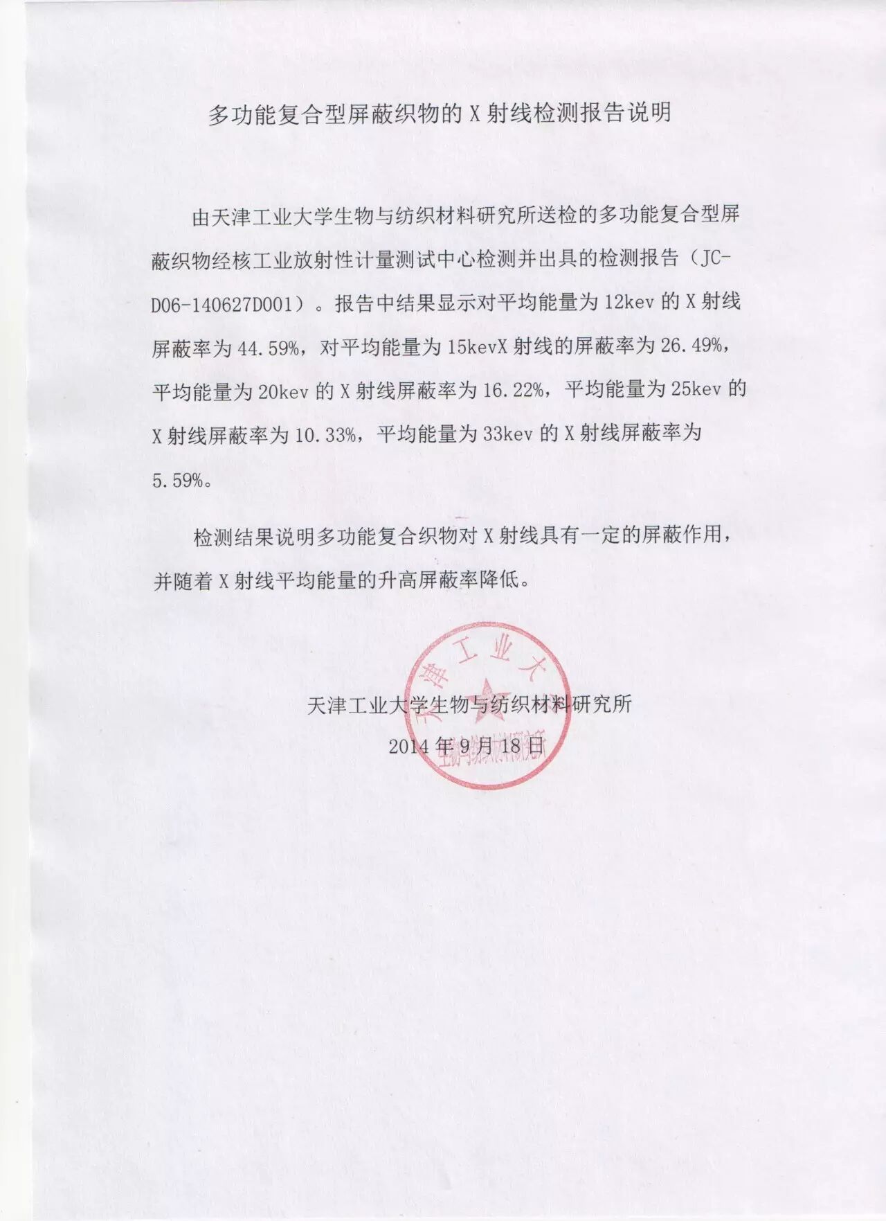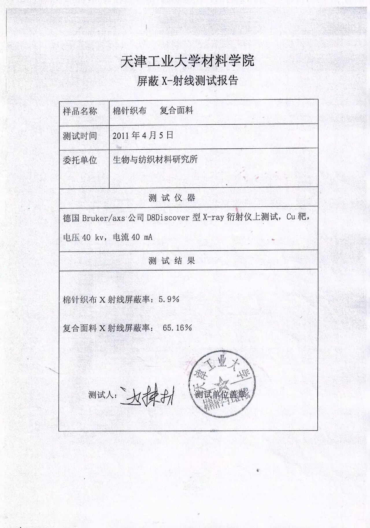 天津工业大学的检测报告