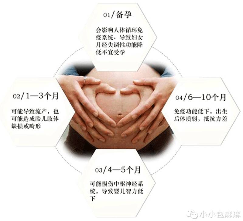不是包妈危言耸听,据调查显示,我国每年出生2000万儿童,有35万为残缺儿,其中25万为智力残缺,有专家认为电磁辐射也是影响因素之一。世界卫生组织认为,电脑、电话的电磁辐射和射线辐射都对胎儿有不良影响。尤其是怀孕头三个月的孕妈,更要注意远离辐射,因为头三个月是胎儿器官形成的关键时期,辐射很可能造成胎儿畸形,甚至死亡,而电离辐射(大型发电站、地铁和机场的安检设备)是累计伤害,所以在备孕及孕期尽量减少接触机会,增加防护!