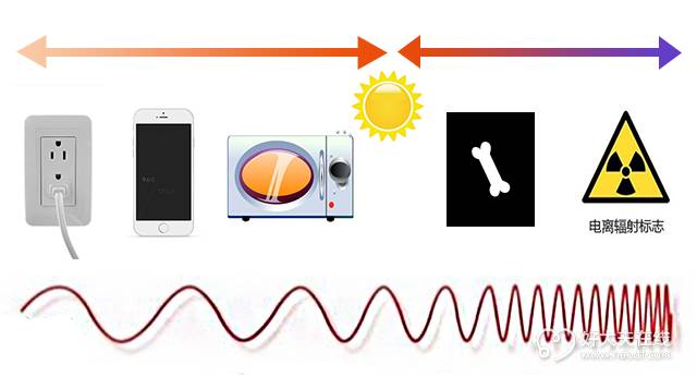 来,我们一起看图说话,见图1。辐射按照频率高低可划分为——非电离辐射和电离辐射。非电离辐射就包括咱们身边常见的:手机、电话、wifi、高压电线、微波炉等家用电器,它最显著的效应只是热效应。