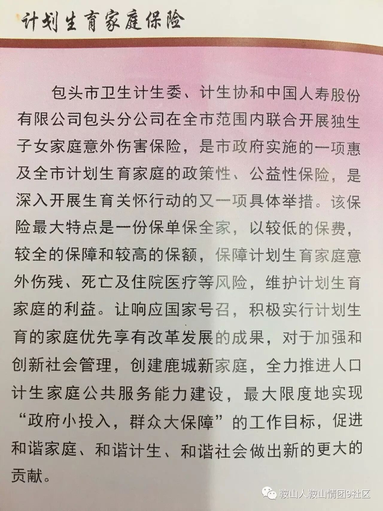 包头市计划生育保险自2011年开展以来,深受广大居民的认可,为计划生育家庭增强抵御意外伤害风险能力,促进家庭发展,推动计划生育事业发展,起到了重要作用。使实行计划生育的家庭进一步享受到党和政府的关怀。