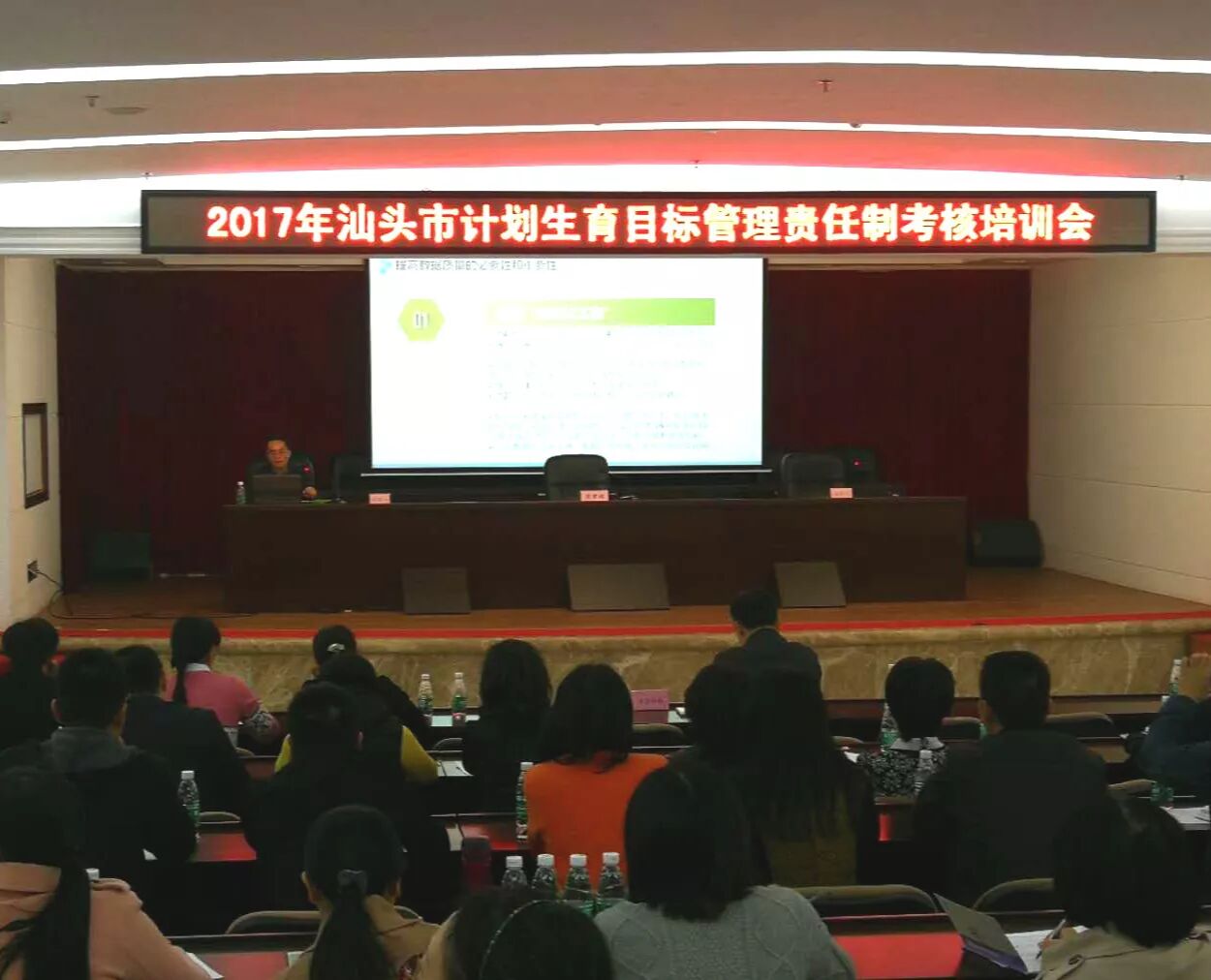 12月6日、7日,市卫计局分别举办汕头市2017年度计划生育目标管理责任制考核西片、东片地区培训会。各区县卫生计生局分管考核工作的副局长、股室负责人及各镇(街道)计划生育工作分管领导、计生办主任和业务人员共400多人参加培训。