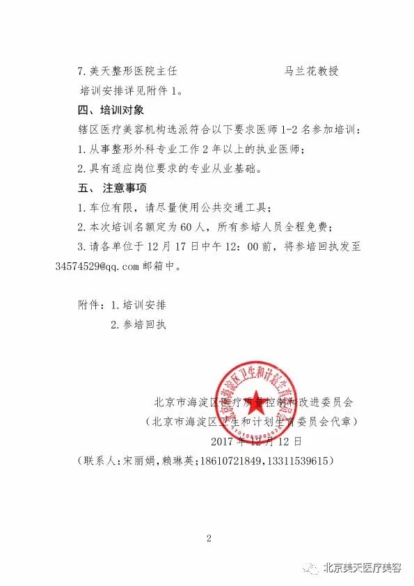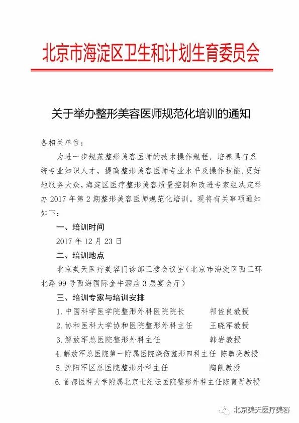 国家为进一步规范整形美容医师的技术操作规程, 培养具有系统专业知识人才,提高整形美容医师专业水平及操作技能,更好地服务大众,海淀区医疗整形美容质量控制和改进专家组决定举办——