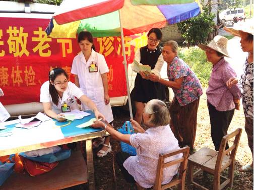 10月9日重阳节,武宣县三里镇卫生和计生服务所联合三里镇中心医院深入三里镇沙安村,开展65岁以上老人义诊活动,受到了当地群众的热烈欢迎。