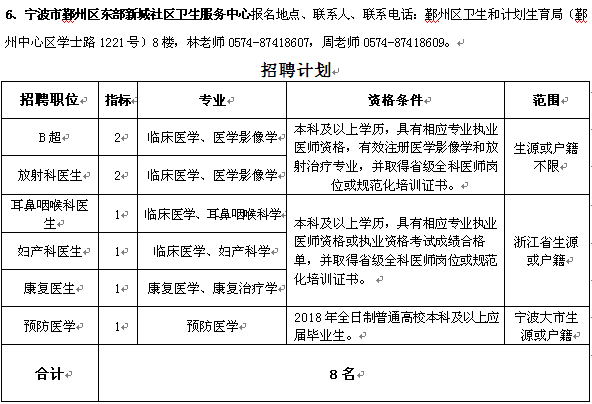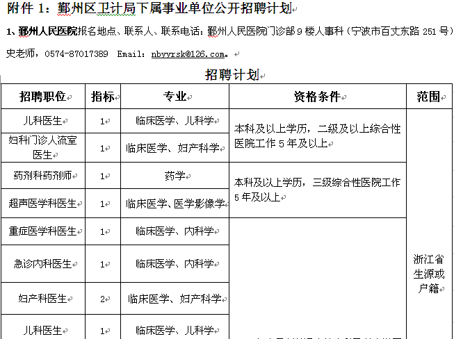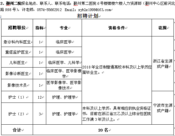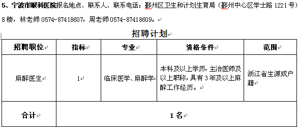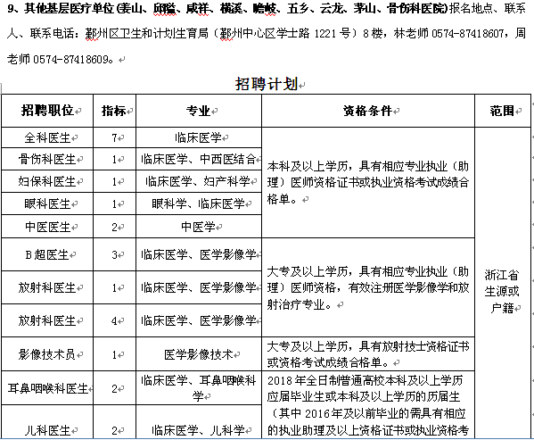 本次公开招聘工作咨询电话:鄞州区卫生和计划生育局87418607、87731039;监督电话:87418688。